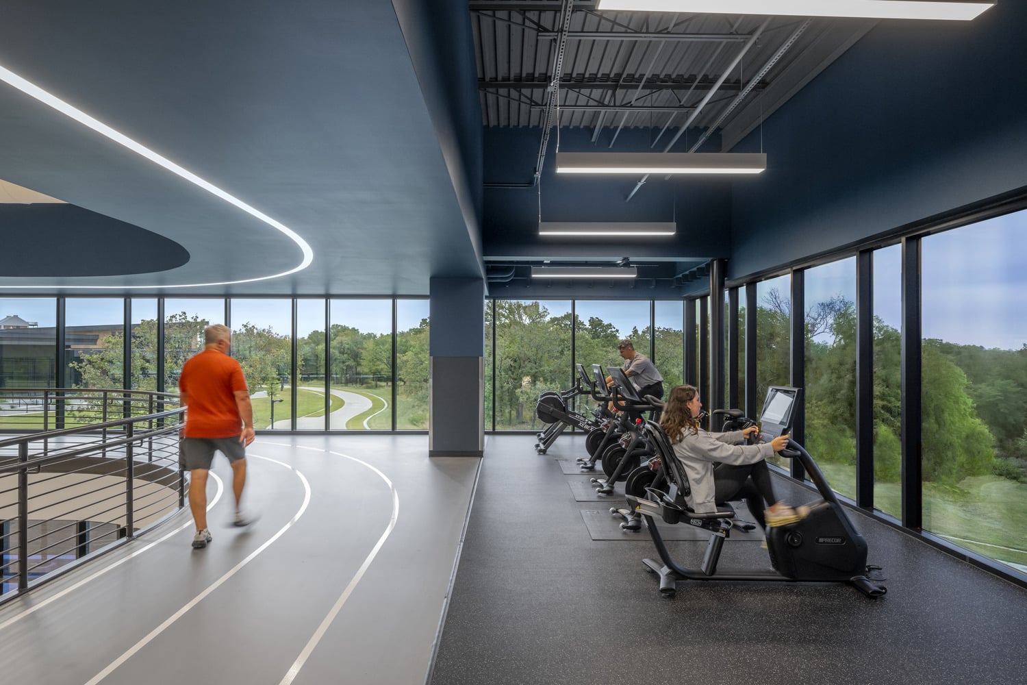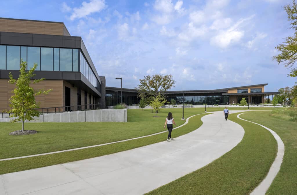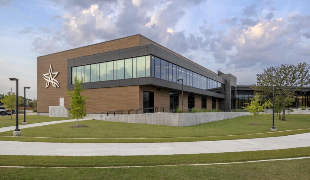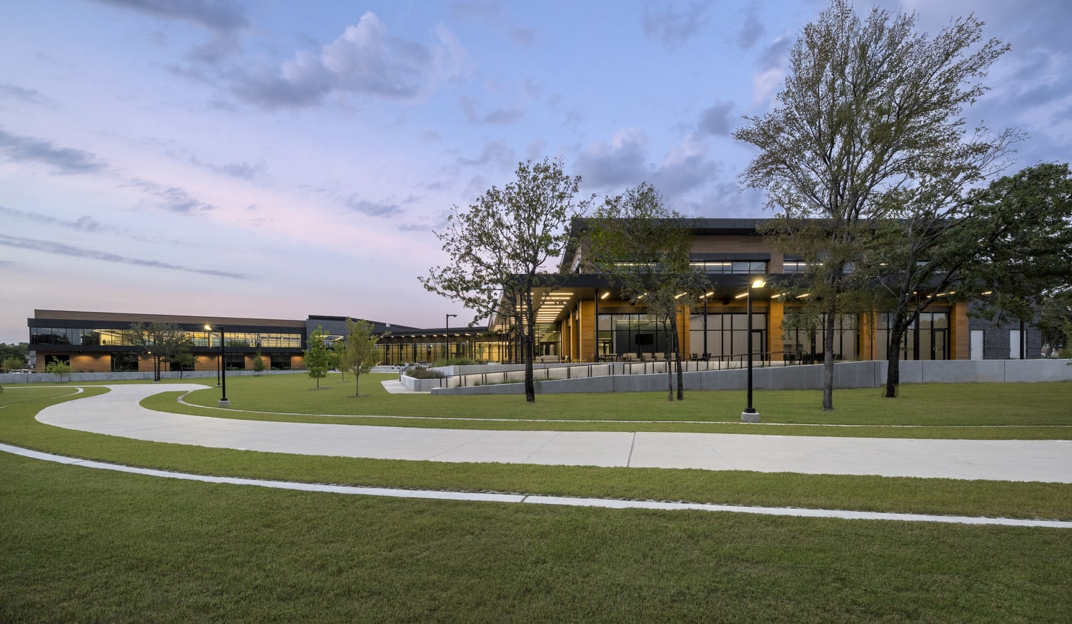 Nestled within one of Arlington’s largest post oak groves, the center’s design respects the natural landscape by preserving existing trees. The building integrates seamlessly into the area’s considerable topography, creating a harmonious blend of architecture and nature.