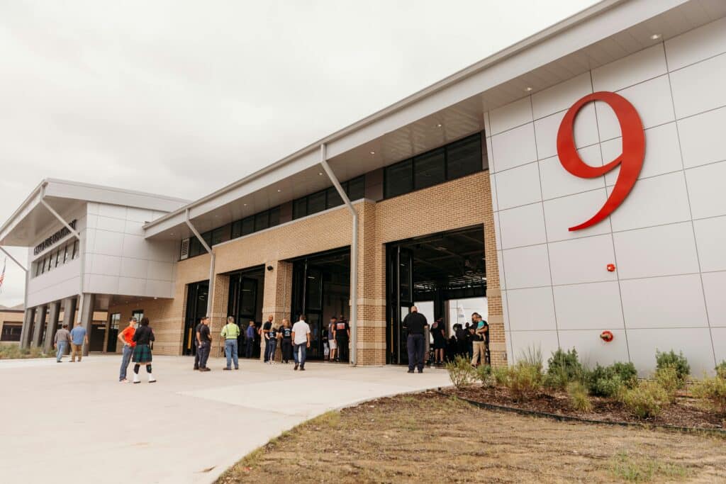 The City of Denton recently celebrated the grand opening of Fire Station No. 9, located near the Denton Enterprise Airport on Airport Road in Denton, TX. This new facility is designed to improve overall safety and reduce response time for emergencies on the city’s growing west side.